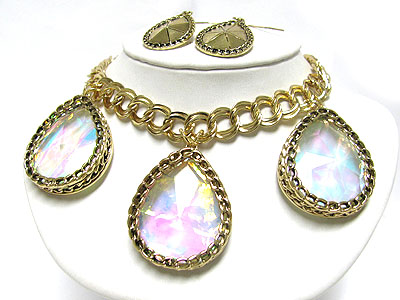 WHOLESALE THREE FACET FORMICA STONE TEAR DROP PENDANT NECKLACE EARRING SET 345141