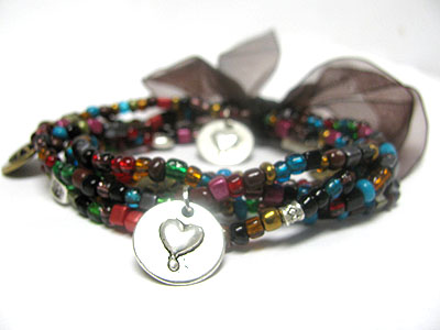 WHOLESALE FRIENDSHIP THEME MULTI ROWN BEADS STRETCH BRACELET 345189