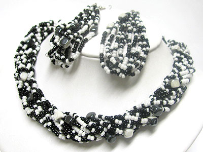 Multi strand bradied seed beads necklace earring set