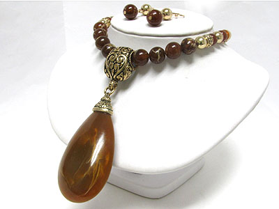 WHOLESALE LARGE FORMICA TEARDROP PENDANT NECKLACE EARRING SET 345283