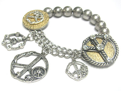 WHOLESALE PEACE THEME METAL BALL STRETCH BRACERET 345312