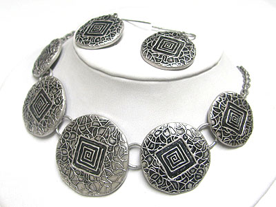 WHOLESALE PEBBLE METAL DISK LINK NECKLACE EARRING SET 345418
