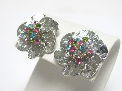 Crystal centered large metal flower earring