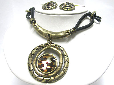 WHOLESALE ANIMAL PATTERN ROUND METAL DISK PEANDANT CORD LINK NECKLACE EARRING SET 345505