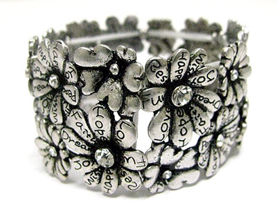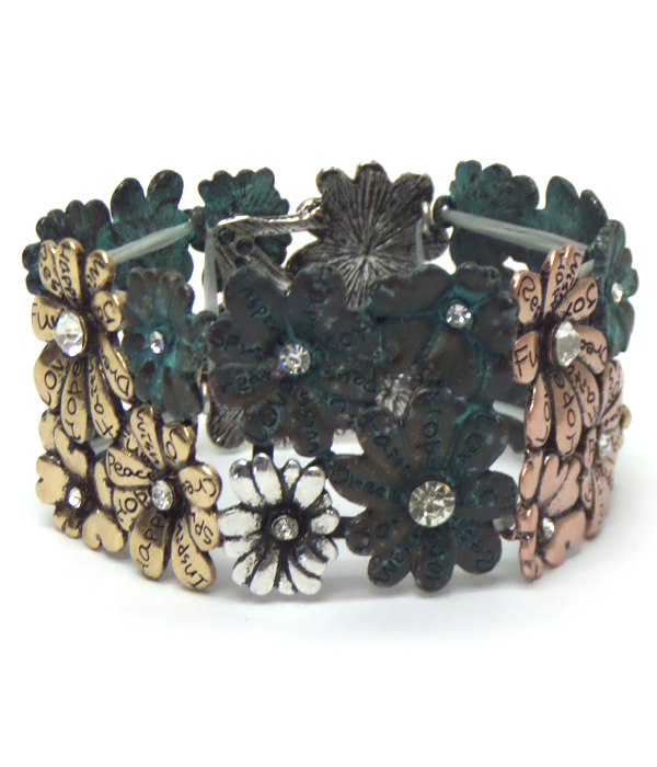 WHOLESALE CRYSTAL STUD TWO TONE METAL FLOWER STRETCH BRACELET 345638
