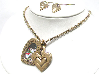 WHOLESALE HEART SHAPE PHOTO FRAME PENDANT NECKLACE EARRING SET 345642