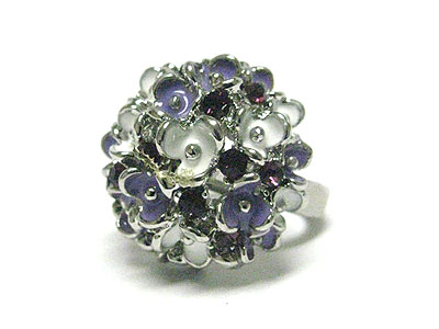 Crystal and enamel metal fashion cluster ring