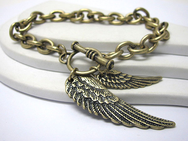 Angel wings charm toggle bracelet