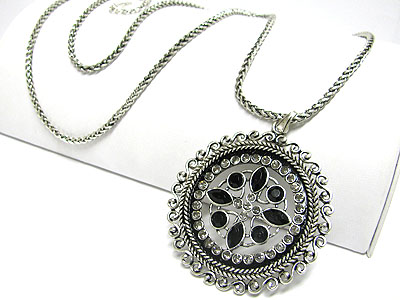 WHOLESALE CRYSTAL AND METAL FILIGREE ROUND PENDANT LONG NECKLACE 345897