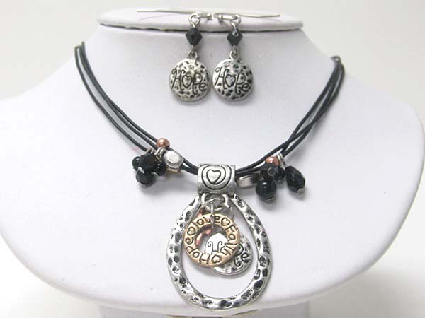 WHOLESALE HAMMERED METAL PENDANT CORD NECKLACE EARRING SET 345981