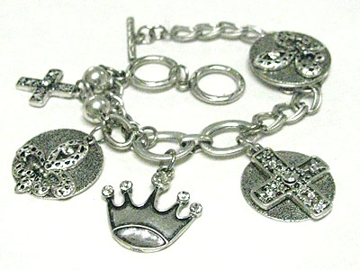 WHOLESALE CRYSTAL STUD CROWN AND FLEUR DE LIS DANGLE MULTI CHAIN BRACELET 346066
