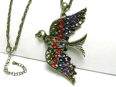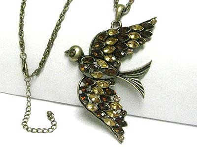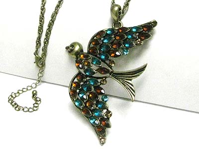 WHOLESALE CRYSTAL FEATHER BIRD PENDANT LONG NECKLACE 346087