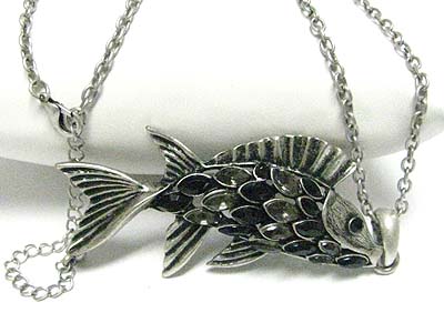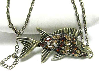 WHOLESALE CRYSTAL SCALE FISH PENDANT LONG NECKLACE 346088