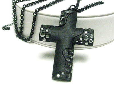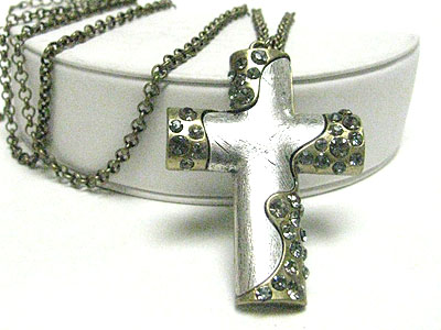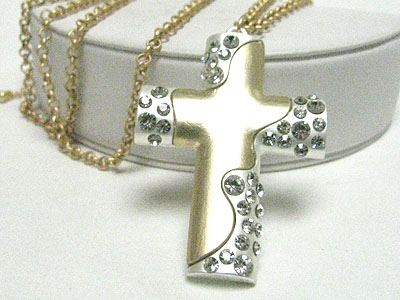 WHOLESALE CRYSTAL STUD TWO TONE METAL CROSS PENDANT NECKLACE 346112