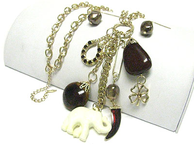 WHOLESALE ELEPHANT AND MULTI LUCKY CHARM DANGLE LONG NECKLACE EARRING SET 346193