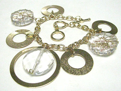 WHOLESALE METAL DISK AND METAL WIRED STONE DANGLE BRACELET 346269