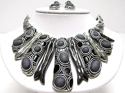 Ethnic style turquoise accent metal bar drop necklace set