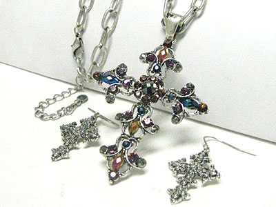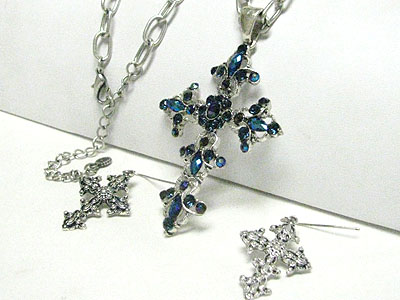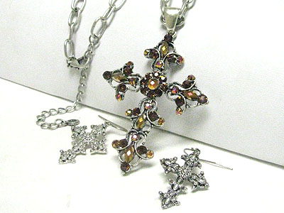 WHOLESALE AUSTRIAN CRYSTAL ANTIQUE CROSS PENDANT NECKLACE EARRING SET 346369