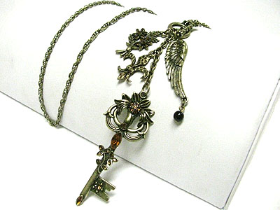 WHOLESALE ANTIQUE STYLE LARGE CRYSTAL STUD KEY PENDANT LONG NECKLACE 346486