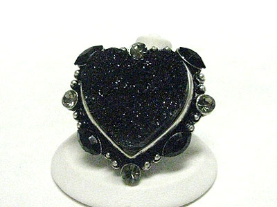 WHOLESALE NATURAL LOOKING ROUGH SURFACE CRYSTAL HEART ADJUSTABLE RING 346540