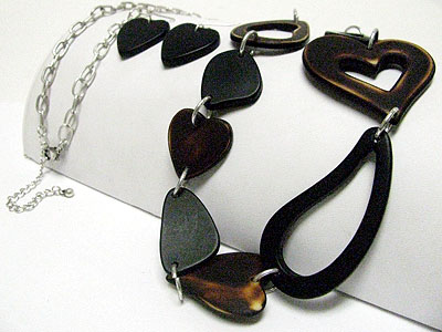 WHOLESALE WOOD LOOKING FORMICA HEART LINK LONG NECKLACE SET 346665