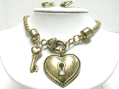 WHOLESALE METAL HEART LOCK AND KEY THICK CHAIN NECKLACE SET 346720