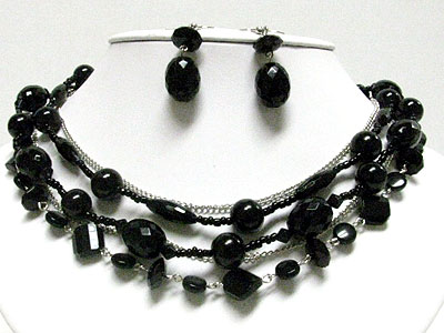 WHOLESALE MULTI ROW MULTI BEADS AND CHAIN NECKLACE SET 346751