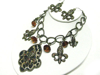 Animal pattern multi fleur de lis charm necklace set