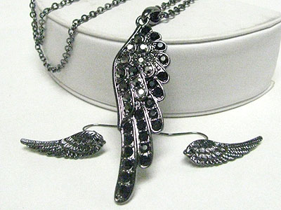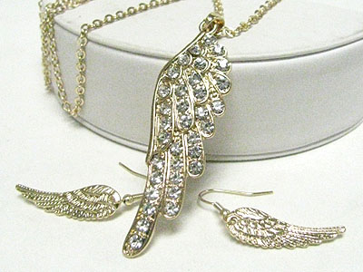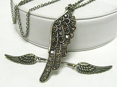 WHOLESALE CRYSTAL STUD WING PENDANT LONG NECKLACE EARRING SET 346815