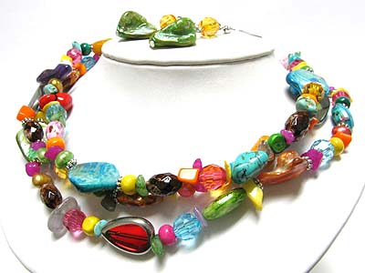 WHOLESALE SEA SHELL AND MULTI CHIP STONE TRIPLE LAYER NECKALCE SET 346872