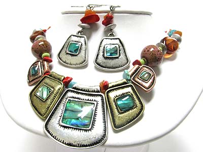 WHOLESALE ABALONE AND NATURAL MIXED CHIP STONE NECKLACE WEARRING SET 346942