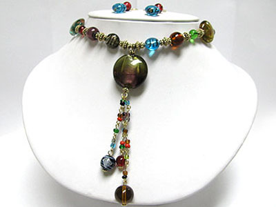 WHOLESALE MURANO GLASS AND SEED BEADS Y DROP NECKLACE EARRING SET 347010