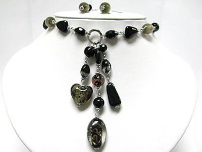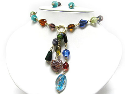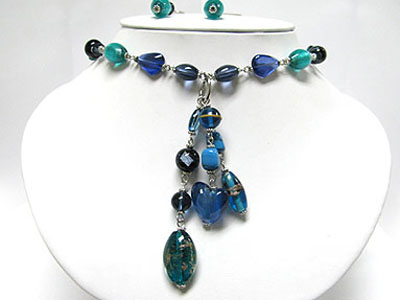 WHOLESALE MURANO GLASS AND SEED BEADS Y DROP NECKLACE EARRING SET 347013