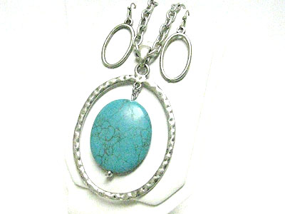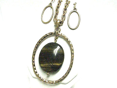 WHOLESALE NATURAL OVAL STONE AND BURNISH METAL CHAIN NECKLACE EARRING SET 347017