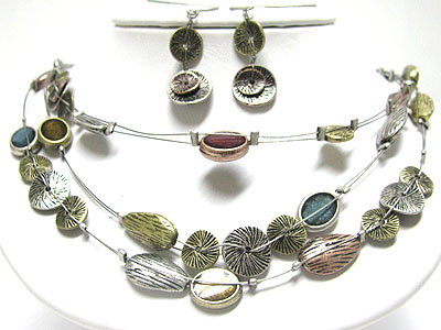 WHOLESALE MULTI LAYER METALLIC DISK WIRE LINK NECKLACE EARRING SET 347025