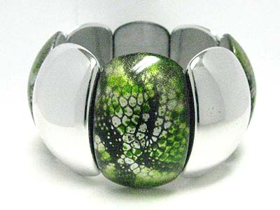 WHOLESALE SNAME SKIN PATTERN METAL ROUND EDGE BAR STRETCH BRACELET 347029