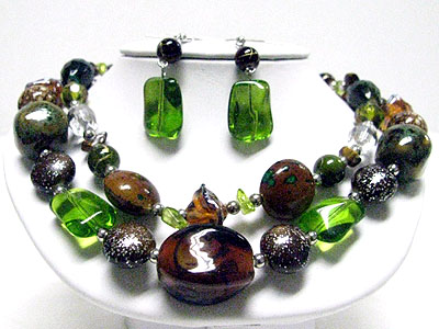 WHOLESALE DOUBLE STRAND CERAMIC AND GLASS STONE NECKALCE SET 347053