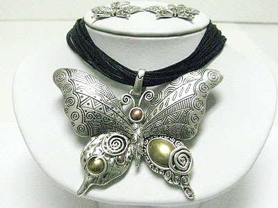 Crystal stud metal casting butterfly pendant multi cord necklace set