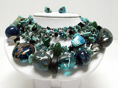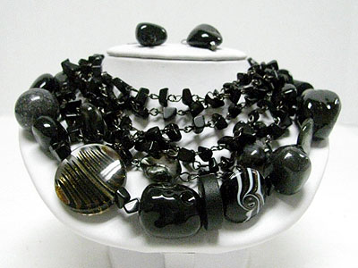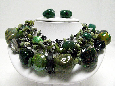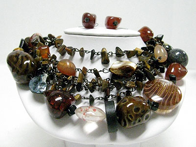 WHOLESALE MULTI STRAND NATURAL CHIP STONE AND CHUNKY BEADS NECKLACE SET 347207