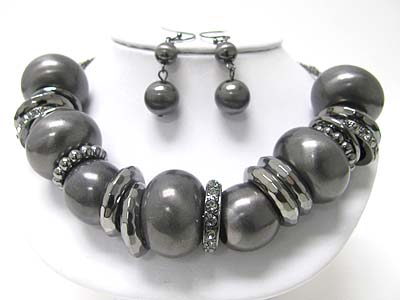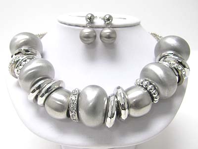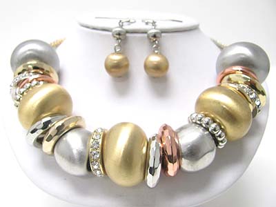 WHOLESALE CRYSTAL RING AND MULTI METAL CHUNKY BALL LINK NECKLACE SET 347224