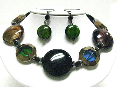 WHOLESALE METALLIC FACE CUT GLASS AND CERAMIC STONE NECKLACE SET 347293