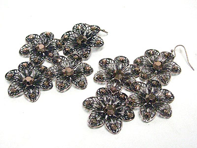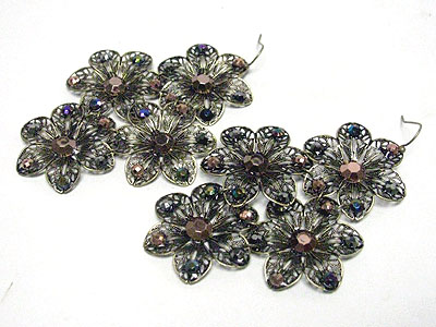 WHOLESALE CRYSTAL STUD METAL FILIGREE FLOWER LINK DROP EARRING 347323