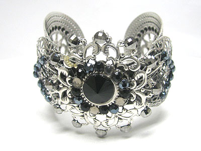 Metallic stone and filigree metal cuff bangle