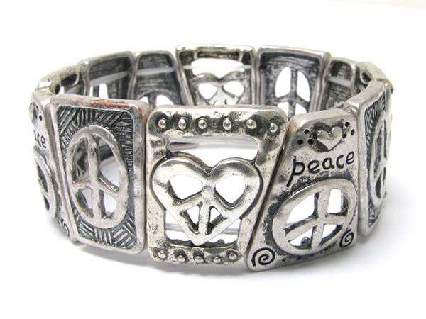 Chicos style antique tri tone metal peace theme stretch bracelet