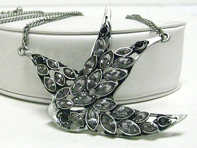 Crystal feather bird pendant necklace