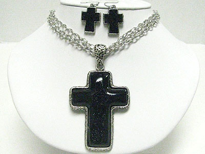WHOLESALE NATURAL LOOKING ROUGH SURFACE CROSS PEANDANT NECKALCE EARRING SET 347421