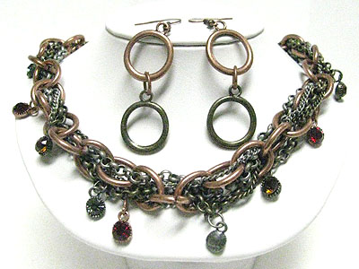 WHOLESALE CRYSTAL STONE DANGLE MULTI CHAIN NECKLACE SET 347474