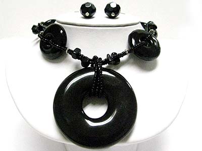 WHOLESALE CERAMIC DONUT AND SEED BEADS LINK NECKLACE SET 347476