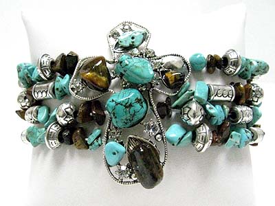 WHOLESALE NATURAL CHIP STONE AND CRYSTAL CROSS STRETCH BRACELET 347519