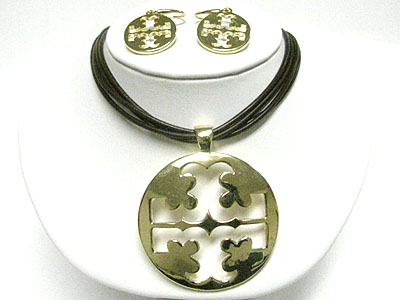 WHOLESALE CUT OUT ROUND METAL PENDANT AND CORD NECKLACE EARRING SET 347553